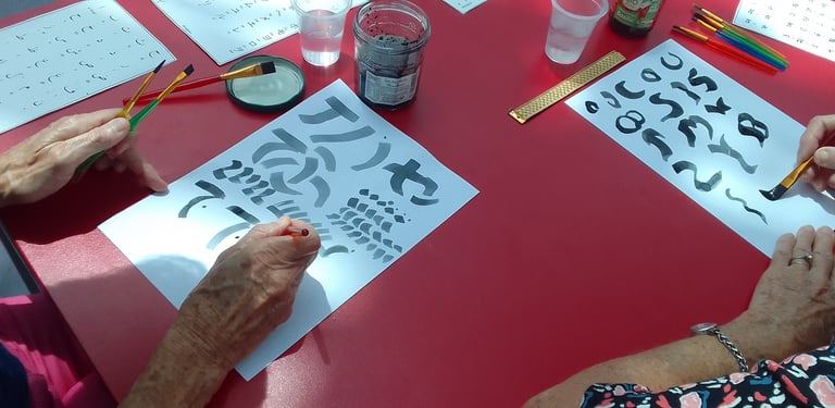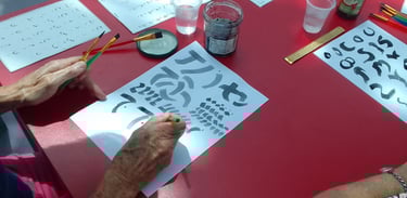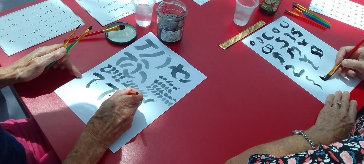 Grâce au dispositif Guetali, l'exposition "Asémique" de l'artiste peintre L'1DI1, accompagnée d'actions de médiation et d'initiation à la calligraphie abstraite, a pu être programmée dans 14 structures au cours de l'année 2023-2024 :