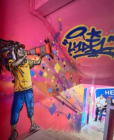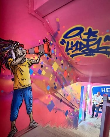 Chaque visite permet d’explorer l’intégralité du bâtiment et de plonger dans un univers artistique inédit, entre fresques monumentales et créations immersives.
