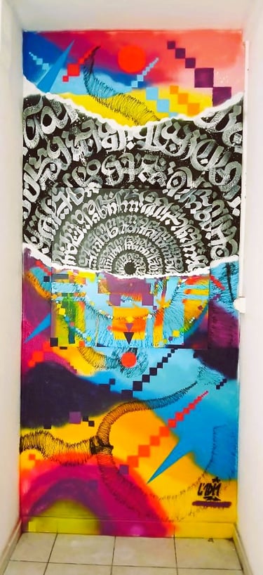 Un projet unique à La Réunion dédié à la culture urbaine, puisque ce sont 20 street artistes qui ont investit depuis le mois de juin tous les recoins de cet espace d’environ 2000m2 pour transformer chaque pièce des 16 appartements avec des œuvres picturales et des installations.