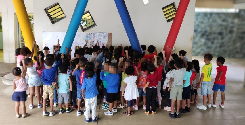 C’est avec une immense fierté que les élèves de l’école maternelle Ann-Mary Gaudin de Lagrange ont pu inaugurer la fresque qu’ils ont réalisée avec l’artiste L’1DI1, sur les murs de leur cour, le vendredi 28 juin 2024.