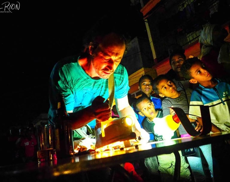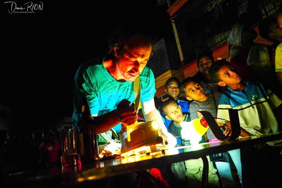 Au sein du collectif « Bubbles Paradise Liquid Show », L’1DI1 développe des techniques de projection de liquides colorés en utilisant un projecteur à diapositive. Dès lors qu’il est possible de projeter de la couleur, il devient possible de peindre avec la lumière, de colorer sans toucher ce qui nous entoure. Et ces projections de formes en mouvement prennent vie pour un résultat unique, d’une beauté poétique, qui invite à la narration intérieure.